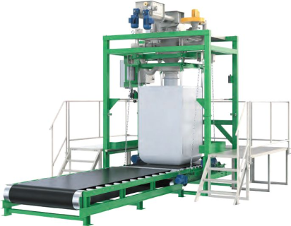 Фасовка в мягкие контейнеры типа БИГ-БЭГ с увеличенной производительностью и уплотнением хорошо сыпучих продуктов, плохо сыпучих продуктов и среднекусковых (хрупких) сыпучих продуктов.
