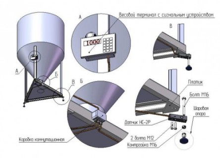 Комплект элементов для взвешивания емкостей и бункеров, состоящий из тензодатчиков, силопередающих устройств, соединительной коробки и весового терминала. Позволяет получить систему для взвешивания любого технологического оборудования с минимальными затратами.
